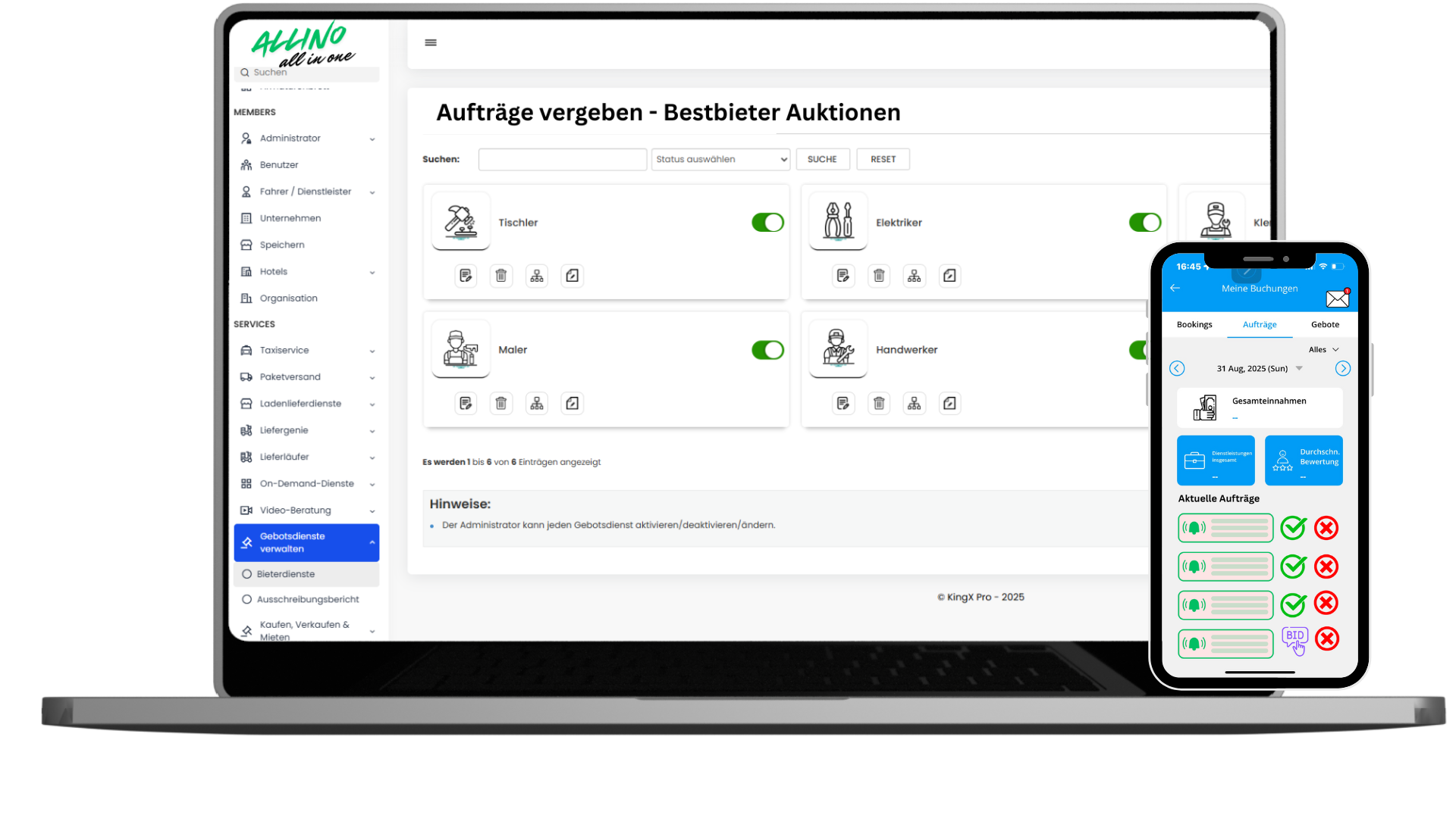 Deine Umsätze, Aufträge, Lieferungen, Angebote, Dienstleistungen uvm direkt über die App generieren,